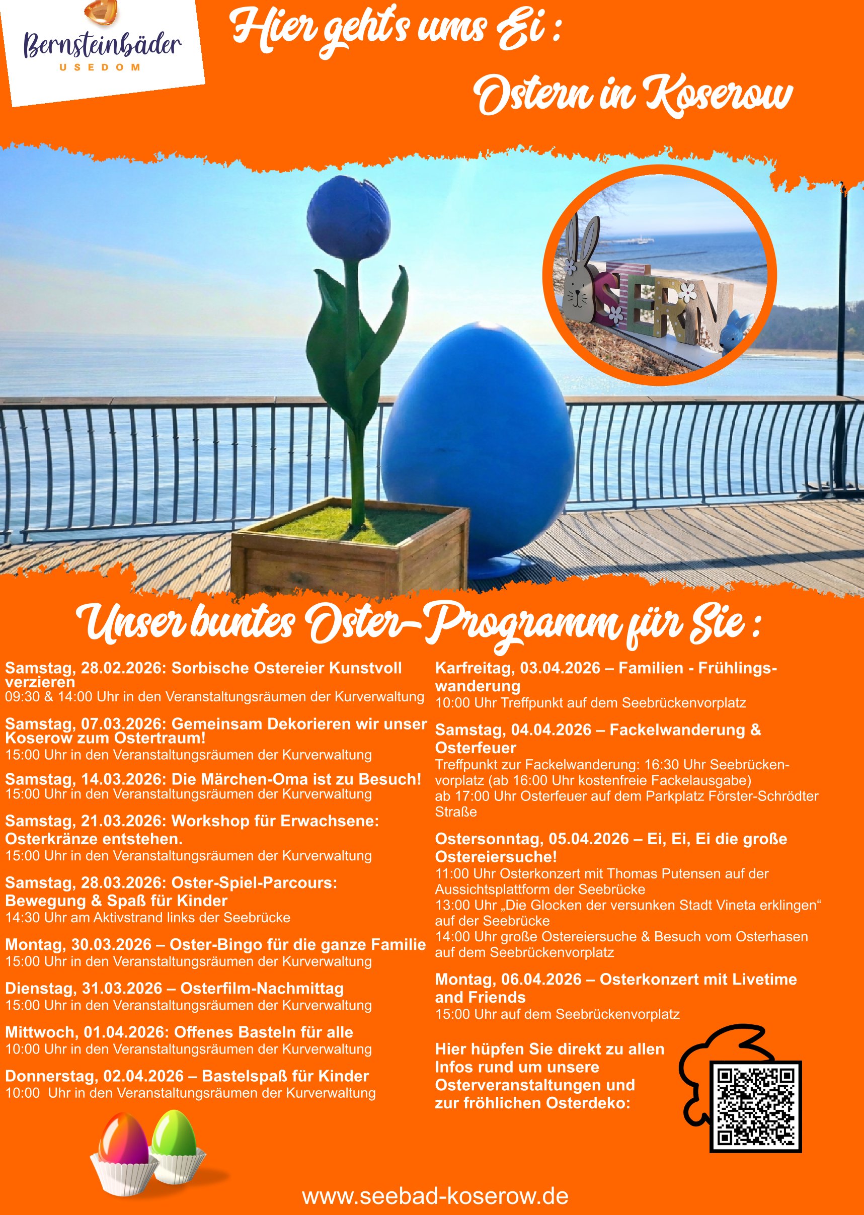 Unsere Gäste im Ostseebad Koserow freuen sich auf ein buntes Oster-Programm. Schauen Sie, welche Veranstaltungen es 2026 zu entdecken gibt.
